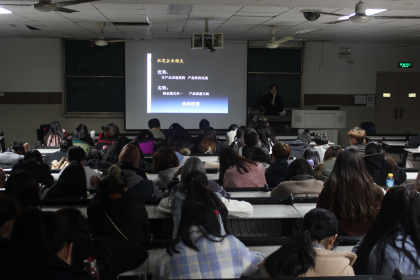 2017年11月28日下午,艺术沙龙举行了一次学术报告活动,请湖北省服装商会秘书长周进女士宣讲服装行业的现状与发展趋势,太阳成集团122cc官网入口服装专业百名员工及部分教师参加了报告会。
